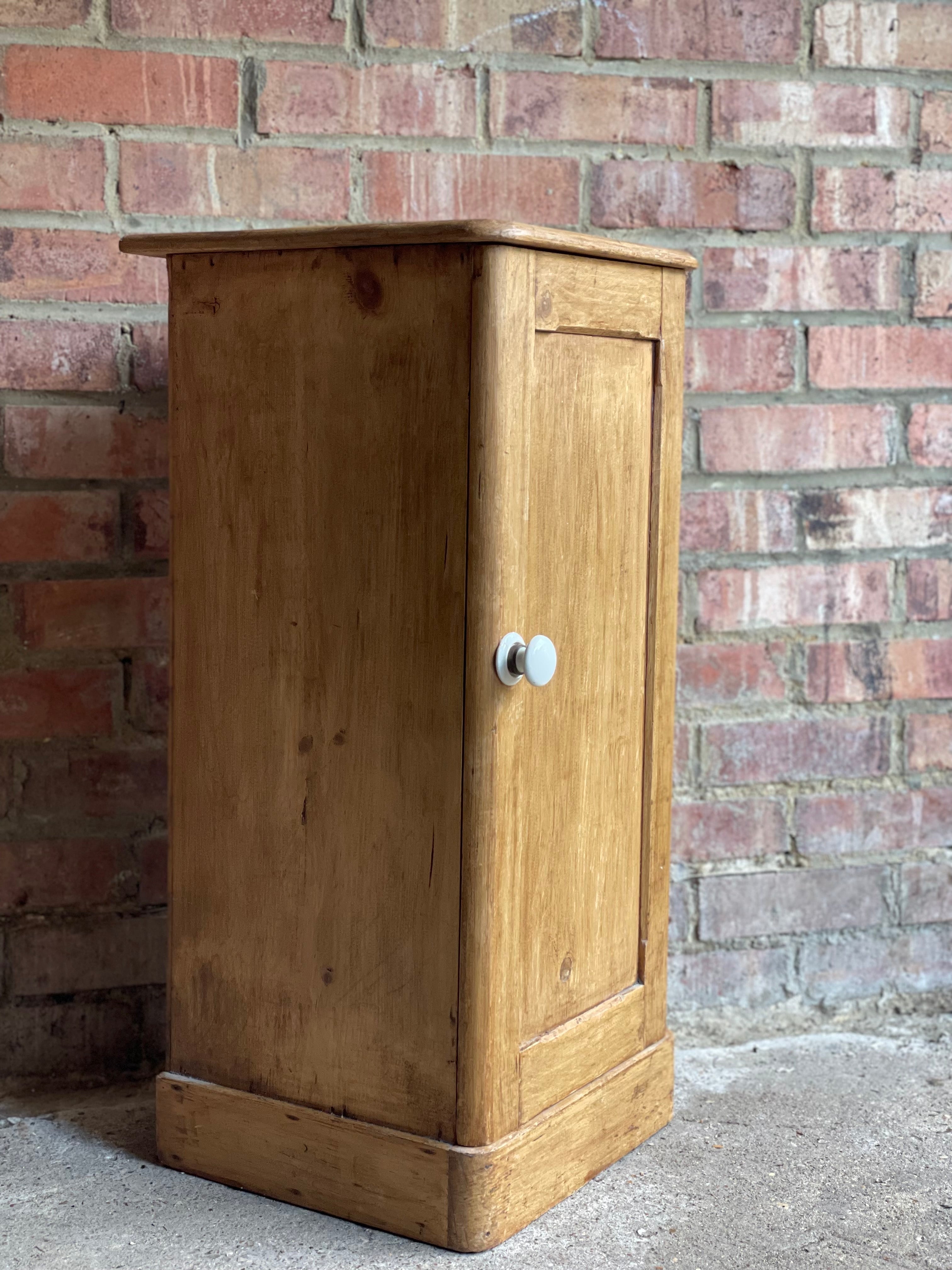 Gorgeous pine pot cupboard with original white porcelain knob. This is in very good condition and would make a lovely addition to a bedroom or bathroom.